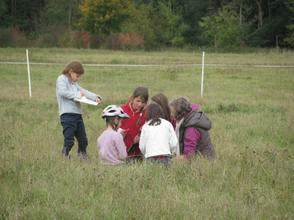 In kleiner Gruppe lernen die Kinder mit allen Sinnen heimische Pflanzen kennen und
